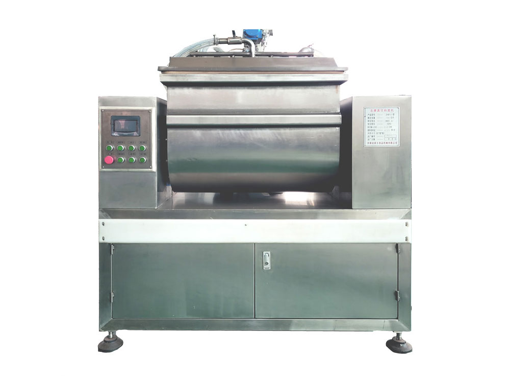 →臥式真空和面機(jī)系列  →型號(hào)50/75/100/150/200/300型  →功能  主要用來(lái)和制餃子皮、餛飩皮、鮮食面、水煮面、掛面等,若更換攪拌器,可適用于速凍行業(yè)的各種面食制品的加工。  →特色  1、配備智能觸控顯示屏,參數(shù)自由設(shè)定,可手動(dòng)攪拌、可一鍵攪拌。并可根據(jù)工藝設(shè)定和面時(shí)間和真空度。  2、設(shè)備由PLC控制,可實(shí)現(xiàn)自動(dòng)起蓋、自動(dòng)計(jì)量加水、自動(dòng)翻斗、自動(dòng)進(jìn)粉、抽真空和面(拌粉)、自動(dòng)排面功能?! ?、獨(dú)特的密封結(jié)構(gòu),有效防止面團(tuán)受到污染,進(jìn)一步提高食品安全。  4、和面過(guò)程在真空負(fù)壓下進(jìn)行,使面粉中的蛋白質(zhì)在短時(shí)間、充分的吸收水分,形成面筋網(wǎng)絡(luò),從而使面團(tuán)外表光滑、內(nèi)部結(jié)構(gòu)均勻,透明度高、口感好?! ?、可定制面斗冷卻系統(tǒng),使成品面團(tuán)溫度恒定,確保批量生產(chǎn)的產(chǎn)品質(zhì)量穩(wěn)定?! ?、設(shè)備主體采用不銹鋼制造,符合現(xiàn)行有關(guān)食品衛(wèi)生標(biāo)準(zhǔn)。  →主要技術(shù)參數(shù)產(chǎn)品型號(hào)額定容量(kg)攪拌轉(zhuǎn)速(rpm)主電機(jī)(kW)副電(kW)外形尺寸(長(zhǎng)×寬×高)ZHW  50型50板式40 攪棒44/887.51.11470×932×1483ZHW  75型75板式40 攪棒44/88111.851440×890×1655ZHW 100型100板式40 攪棒44/88111.851440×890×1794ZHW 150型150板式40 攪棒44/88221.851764×1070×1815ZHW 200型200板式40 攪棒44/88221.851964×1070×1815ZHW 300型300板式40 攪棒44/883432074×1170×2022板式攪拌器滾杠-真空油條包子狼牙棒攪拌器