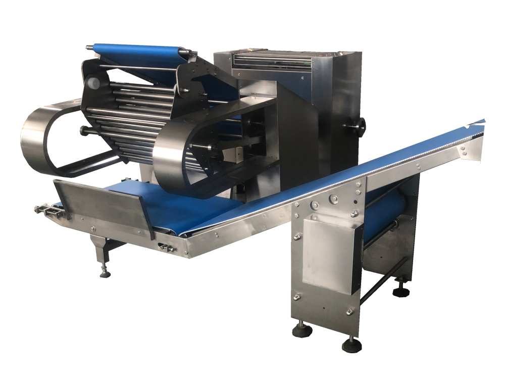 2、疊層機使面帶Z字型折疊,進一步豐富面帶網(wǎng)狀結(jié)構,提高面筋度,設備可根據(jù)客戶場地需求選擇不同的擺放形式。